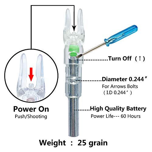 XHYCKJ 6PCS S Led Lighted Nocks for Arrows with .244"/6.2mm Inside Diameter,Screwdriver Included
