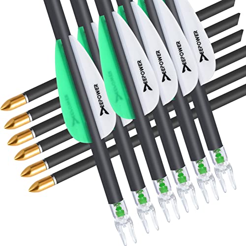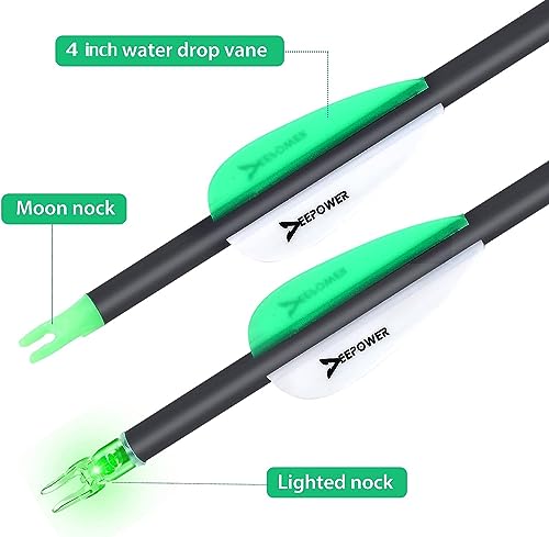 DEEPOWER 30 Inch 12 Pack Carbon Arrows with 6 Pack Lighted Nocks and 12 Pack Replaceable Arrow Tips - Spine 500, for Compound Bow and Recurve Bow Shaft