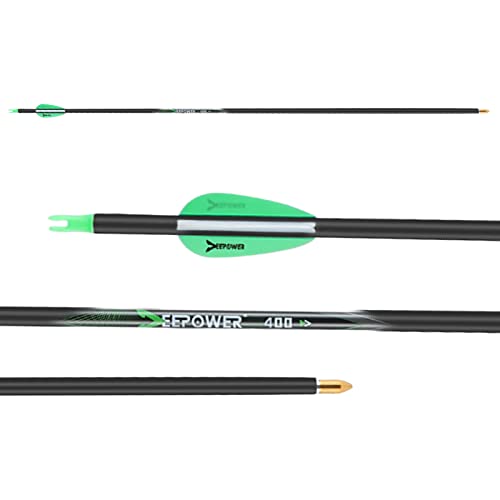 DEEPOWER 31 inch 100% Carbon Arrows with Lighted Nocks and Broadheads 6 Pack for Compound Bow and Recurve Bow Shaft Spine 350/400/500