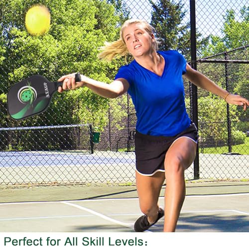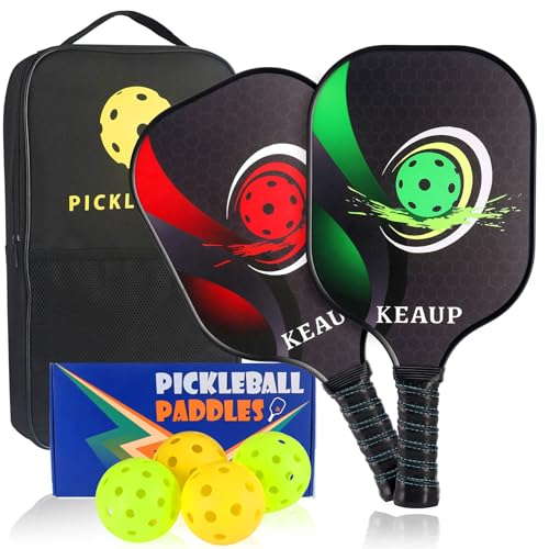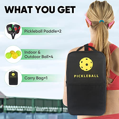 Pickleball Paddles Set of 2 Fiberglass Pickle Ball Paddles, 3D Pickle Ball Rackets 2 Pack, 2 Indoor and 2 Outdoor Pickleball Balls,1 Pickleball Carrying Bag